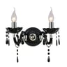 Απλίκα τοίχου της εταιρείας Aca Decor σε vintage στυλ. Είναι κατασκευασμένη από μεταλλικό σκελετό σε ασημί χρώμα και μαύρα ακρυλικά διακοσμητικά στοιχεία. Διαθέτει θέσεις για δύο λαμπτήρες έως 40W οι οποίοι δεν συμπεριλαμβάνονται.