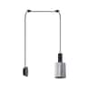 Απλίκα τοίχου με μοντέρνο στυλ από μέταλλο σε μαύρο χρώμα και γκρι γυάλινο καπέλο. Μπορείς να ρυθμίσεις το ύψος και το σχήμα της με τα 2 στηρίγματα οροφής που διαθέτει.