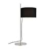 Επιτραπέζιο φωτιστικό της εταιρείας Aca Decor σε μίνιμαλ στυλ. Είναι κατασκευασμένο από μεταλλικό σκελετό σε ασημί ματ χρώμα με σατινέ φινίρισμα. Το καπέλο είναι υφασμάτινο σε μαύρο χρώμα. Το καλώδιο είναι κατασκευασμένο από μαύρο PVC και έχει μήκος 1,5 μέτρα.