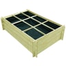 Αυτό το μποστάνι λαχανόκηπου, είναι ιδανικό για να καλλιεργείτε λαχανικά και λουλούδια στην αυλή, το μπαλκόνι ή τη βεράντα σας. Είναι ευρύχωρο και έχει τη δυνατότητα να φιλοξενήσει σημαντικό αριθμό φυτών ή λουλουδιών, ενώ μπορεί να διαιρεθεί σε 9 ξεχωριστά τμήματα, καθιστώντας δυνατή την καλλιέργεια διαφορετικών φυτών. Κατασκευασμένη από πράσινο εμποτισμένο ξύλο πεύκου, αυτή η ξύλινη ζαρντινιέρα είναι πολύ στιβαρή, ανθεκτική και διαθέτει αντίσταση στη μούχλα. Η συναρμολόγηση είναι πολύ εύκολη. Παρακαλούμε σημειώστε πως το ξύλο είναι φυσικό προϊόν και ενδέχεται να παρουσιάσει ατέλειες.
