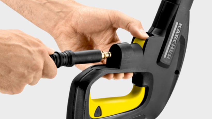 Το λάστιχο υψηλής πίεσης είναι εύκολο στο χειρισμό του, αφού με μία μόνο κίνηση συνδέεται και αποσυνδέεται από τη συσκευή και το πιστόλι.