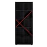Βιβλιοθήκη κατασκευασμένη από ξύλο MDF_E1 σε ανθρακί χρώμα με κόκκινες λεπτομέρειες. Διαθέτει 10 ράφια και μπορεί να τοποθετηθεί σε οποιοδήποτε μέρος του σπιτιού για να δώσει ένα μοντέρνο ύφος.