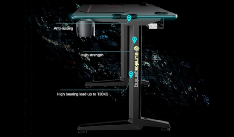 Το gaming γραφείου Eureka ERK-GIP-44B έχει στιβαρό σχεδιασμό χωρίς όμως να κάνει συμβιβασμούς στην αισθητική. Το μοναδικό πλαίσιο στήριξης CRS σε σχήμα I καλύπτεται από μεταλλική επίστρωση για να δημιουργήσει ένα φινίρισμα λεπτής υφής.