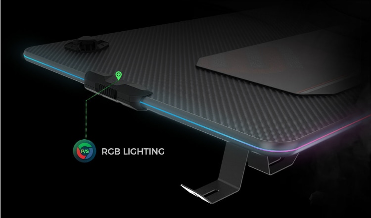 Το gaming desk ERK-GIP-44B της Eureka διαθέτει mousepad σε όλη την επιφάνεια, RGB φωτισμό 6 διαφορετικών χρωμάτων, 4 θύρες USB ενσωματωμένες σε βάση για χειριστήρια, βάση για ακουστικά, καθώς και βάση για τα καλώδια ή πολύπριζα. Έτσι σου επιτρέπει να κρατάς πάντα τακτοποιημένο το γραφείο σου και να είσαι πάντα έτοιμος να ριχτείς στη μάχη. Η μεγάλη επιφάνεια του σου επιτρέπει να τοποθετήσεις 2 monitor και οποιοδήποτε άλλο gaming εξοπλισμό χρειάζεται κοντά σου.