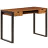 Αυτό το γραφείο από μασίφ ξύλο sheesham, το οποίο διαθέτει 2 συρτάρια και ράφι για πληκτρολόγιο, αποπνέει μια vintage γοητεία που θα το καταστήσει μια ξεχωριστή προσθήκη στο σπίτι ή τον επαγγελματικό σας χώρο. Μπορεί, επίσης, να χρησιμοποιηθεί ως τραπέζι κονσόλα ή γραφείο υπολογιστή. Το σώμα του γραφείου είναι κατασκευασμένο από μασίφ ξύλο sheesham. Το sheesham είναι ένα τροπικό σκληρό ξύλο, γνωστό και ως rosewood ή παλίσανδρος, το οποίο είναι δημοφιλές για τα έντονα νερά του. Οι διαδικασίες του γυαλίσματος, του βαψίματος και του λουστραρίσματος είναι περίτεχνα ολοκληρωμένες, ενώ η δεξιοτεχνία κατασκευής και τα όμορφα νερά του ξύλου καθιστούν το κάθε έπιπλο μοναδικό και ελαφρώς διαφορετικό από το επόμενο. Το γραφείο είναι σταθερό και ανθεκτικό, ενώ ομορφαίνει τον χώρο σας. Οι εντυπωσιακές χειροποίητα σκαλισμένες λεπτομέρειες και τα ατσάλινα πόδια συνδυάζονται αρμονικά σε αυτό το έπιπλο. Τα 2 συρτάρια παρέχουν άπλετο χώρο για να διατηρείτε οργανωμένα και εύκολα προσβάσιμα τα έγγραφά σας και άλλα αναλώσιμα γραφείου. Το γραφείο συναρμολογείται εύκολα. Σημαντική σημείωση: Τα χρώματα και τα νερά του ξύλου ενδέχεται να διαφέρουν από κομμάτι σε κομμάτι, καθιστώντας το καθένα από τα γραφεία μας μοναδικό. Η επιλογή γίνεται τυχαία.