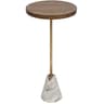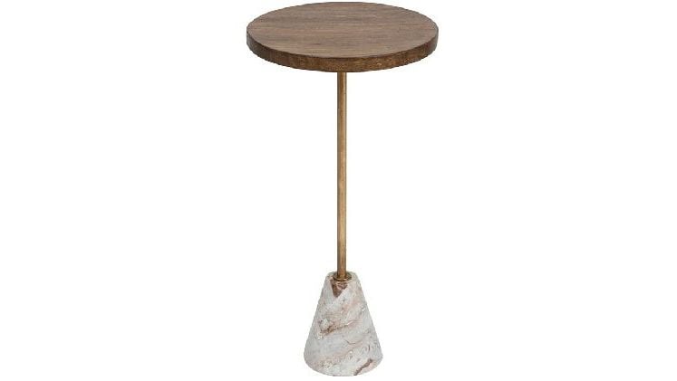 Βοηθητικό τραπεζάκι σαλονιού με μοντέρνο ύφος. Το επάνω μέρος είναι κατασκευασμένο από ξύλο μάνγκο σε καφέ χρώμα, το πόδι είναι χρυσό μεταλλικό και η βάση είναι μαρμάρινη σε λευκό χρώμα με νερά σε καφέ αποχρώσεις. Ο μοντέρνος σχεδιασμός του ταιριάζει σε κάθε διακόσμηση και είναι ιδανικό για να το τοποθετήσεις δίπλα από την πολυθρόνα ή τον καναπέ σου. Το προϊόν έρχεται αμοντάριστο και συναρμολογείται βάσει οδηγιών.