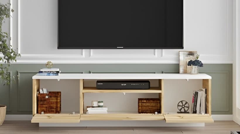 Η κατασκευή του επίπλου τηλεόρασης σου προσφέρει την επιλογή να το τοποθετήσεις με ευκολία στον τοίχο σου, δημιουργώντας ένα εντυπωσιακό και λειτουργικό σημείο εστίασης. Με τα πολυάριθμα ράφια που διαθέτει μπορείς να οργανώσεις τα αγαπημένα σου αντικείμενα με άνεση, κρατώντας τα τακτοποιημένα και πάντα προσβάσιμα.