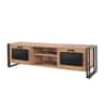 Έπιπλο τηλεόρασης σε μαύρο και καφέ χρώμα από μοριοσανίδα 100% επικαλυμμένη με μελαμίνη, μεταλλικό σκελετό και λαβές. Μπορεί να στερεωθεί στον τοίχο και διαθέτει πρόσθετο αποθηκευτικό χώρο.