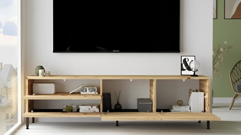 Η κατασκευή του επίπλου τηλεόρασης σου προσφέρει την επιλογή να το τοποθετήσεις με ευκολία στον τοίχο σου, δημιουργώντας ένα εντυπωσιακό και λειτουργικό σημείο εστίασης. Με τα πολυάριθμα ράφια που διαθέτει μπορείς να οργανώσεις τα αγαπημένα σου αντικείμενα με άνεση, κρατώντας τα τακτοποιημένα και πάντα προσβάσιμα.