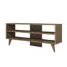 Έπιπλο τηλεόρασης σε καρυδί χρώμα από μοριοσανίδα 100% επικαλυμμένη με μελαμίνη. Διαθέτει πρόσθετο αποθηκευτικό χώρο και είναι ιδανικό για σένα που θες να δώσεις μια πινελιά ανανέωσης στον χώρο σου.