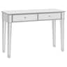 Αυτό το σύγχρονο τραπέζι κονσόλα με καθρέφτη θα προσφέρει στο σπίτι σας έναν αέρα κομψότητας. Χάρις στην ανακλαστική επιφάνεια, το έπιπλο εισόδου θα αναβαθμίσει άμεσα τον διάκοσμό σας και θα δημιουργήσει μια ευρύχωρη αίσθηση. Μπορεί επίσης να χρησιμοποιηθεί ως γραφείο ή έπιπλο χολ. Το βοηθητικό τραπέζι είναι διακοσμημένο με γυαλιστερό ανακλαστικό γυαλί και εκπέμπει μια πινελιά φινέτσας. Το έπιπλο διαθέτει σκελετό από MDF, γεγονός που το καθιστά στιβαρό και ανθεκτικό. Τα δύο συρτάρια παρέχουν χώρο για την οργάνωση κάθε λογής μικροαντικειμένων, ενώ ταυτόχρονα θα είναι εύκολα προσβάσιμα. Τα ακρυλικά κρυστάλλινα πόμολα προσδίδουν κομψή γοητεία και διευκολύνουν το άνοιγμα των συρταριών. Το τραπέζι κονσόλα συναρμολογείται εύκολα.