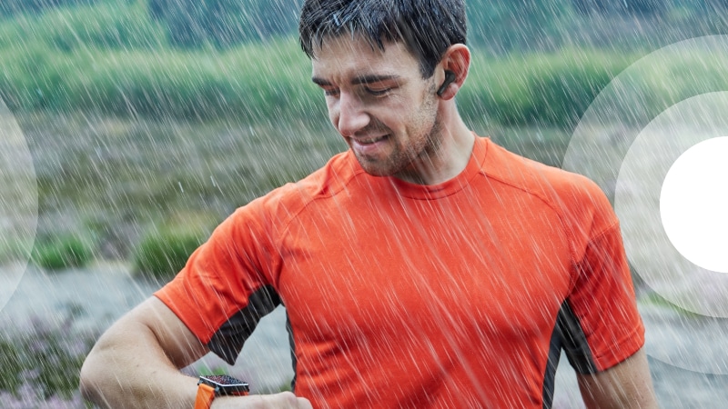 Μην διακόπτεις την ακουστική εμπειρία σου ακόμα και κάτω από το ψιλόβροχο ή την ώρα που προπονείσαι εντατικά. Τα υλικά κλάσης προστασίας IPX5 που περιέχονται σε κάθε ακουστικό δεν θα σε απογοητεύσουν.