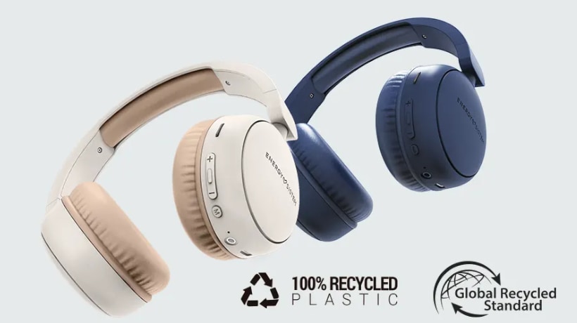 Ασύρματα ακουστικά over-ear κατασκευασμένα από 100% ανακυκλωμένο πλαστικό, με πιστοποίηση GRS. Η συσκευασία είναι επίσης κατασκευασμένη με βιώσιμα και φιλικά προς το περιβάλλον υλικά (πιστοποίηση FSC). Πες γεια στη βιώσιμη μουσική!