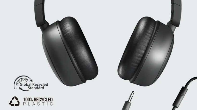 Ασύρματα ακουστικά over-ear κατασκευασμένα από 100% ανακυκλωμένο πλαστικό, με πιστοποίηση GRS. Η συσκευασία είναι επίσης κατασκευασμένη με βιώσιμα και φιλικά προς το περιβάλλον υλικά (πιστοποίηση FSC). Πες γεια στη βιώσιμη μουσική!