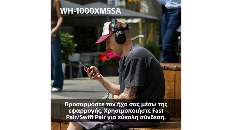 Προσάρμοσε τον ήχο και τις ρυθμίσεις σου στην εφαρμογή Headphones Connect, χρησιμοποίησε το Fast Pair της Google για να εντοπίσεις τα WH-1000XM5SA σου σε περίπτωση που τα χάσεις και χρησιμοποίησε το Swift Pair για να συνδέσεις γρήγορα και εύκολα τα ασύρματα ακουστικά σου σε συσκευές Windows 11 ή Windows 10.