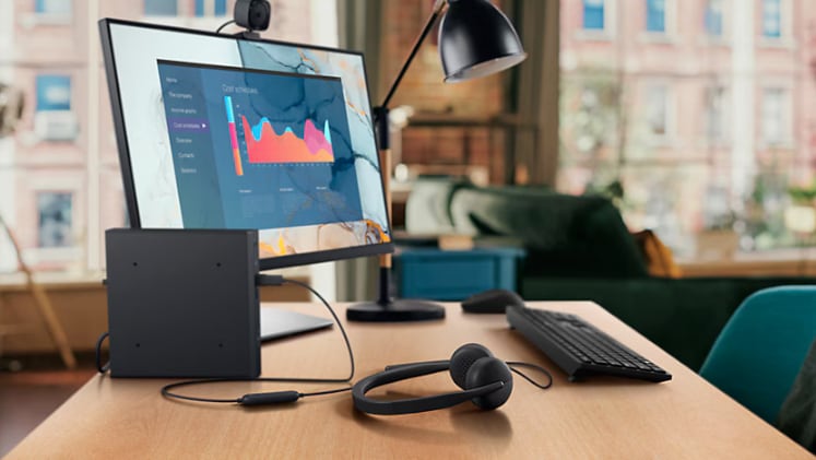 Το ρυθμιζόμενο ελαφρύ κεφαλόδεσμο και τα αντικαταστάσιμα μαξιλάρια αφρού αφρού από δερματίνη επιτρέπουν την παραγωγικότητα και την άνεση όλη την ημέρα κατά τη διάρκεια της διάσκεψης. Συνδεθείτε σε μια θύρα USB-C ή USB-A για να ξεκινήσεις.