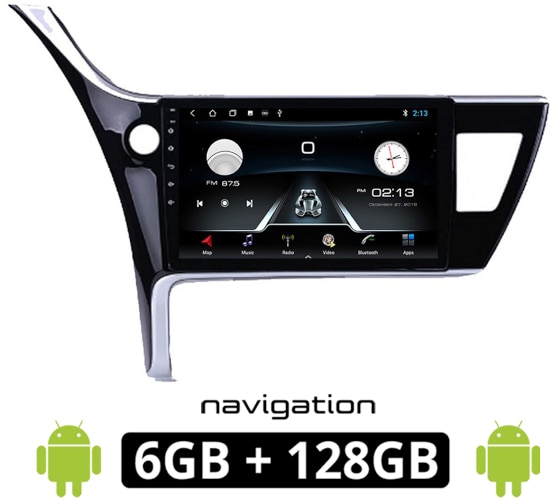 Ηχοσύστημα αυτοκινήτου με οθόνη αφής 10" ιντσών για Toyota Corolla (2017-2019), Android (6GB RAM / 128GB ROM) και ενσωματωμένο Ελληνικό GPS χωρίς internet. Πρόκειται ένα για ολοκληρωμένο πακέτο που δεν χρειάζεται επιπλέον πλαίσια, βάσεις και καλωδιώσεις.