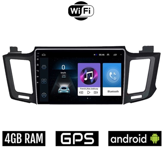 Ηχοσύστημα αυτοκινήτου με οθόνη αφής 10" ιντσών για Toyota Rav 4 2013-2019, Android (6GB RAM / 128GB rom) και ενσωματωμένο Ελληνικό GPS χωρίς internet. Πρόκειται ένα για ολοκληρωμένο πακέτο που δεν χρειάζεται επιπλέον πλαίσια, βάσεις και καλωδιώσεις.