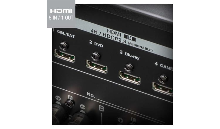 Πέντε είσοδοι HDMI με πλήρη υποστήριξη για HDCP 2.3, HDR10, Hybrid Log-Gamma (HLG), έγχρωμη ανάλυση 4:4:4 και BT.2020 και μία έξοδο HDMI με υποστήριξη ARC παρέχουν τη μέγιστη ποιότητα βίντεο με εξαιρετική φωτεινότητα, αντίθεση και χρώμα .