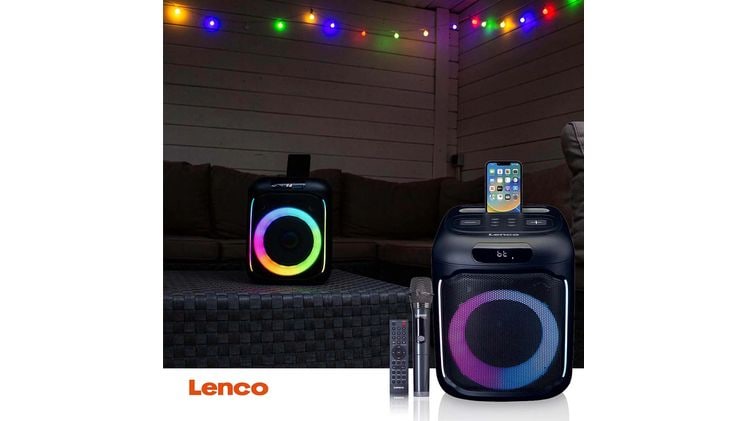 Μεταμόρφωσε κάθε χώρο σε μια ζωντανή πίστα χορού χάρη στα προσαρμόσιμα LED light effects του LENCO PA-101BK που συγχρονίζονται με τον ρυθμό της μουσικής. Το πακέτο περιλαμβάνει ένα ασύρματο μικρόφωνο για karaoke και ένα τηλεχειριστήριο για πλήρη έλεγχο από απόσταση. Το ηχείο διαθέτει επίσης ενσωματωμένη θήκη για tablet και smartphone, κρατώντας τις συσκευές σου προσβάσιμες. Ο έλεγχος της έντασης μικροφώνου και του echo σου δίνει τη δυνατότητα να προσαρμόζεις την εμπειρία στα μέτρα σου.