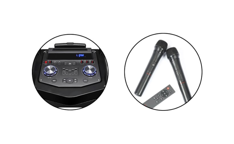 Περιλαμβάνει καραόκε με 2 ασύρματα μικρόφωνα με μείωση έντασης μουσικής με ενεργοποιημένη την προτεραιότητα μικροφώνου και οθόνη LED.