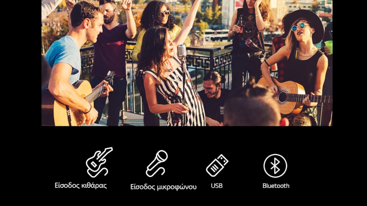 Με το LG XBOOM XL7S, μπορείτε να μετατρέψετε την εκδήλωση σε καραόκε. Συνδέστε το μικρόφωνό σας και τραγουδήστε με την ψυχή σας. Μπορείτε επίσης να συνδέσετε μια κιθάρα και να οργανώσετε μια δική σας ακουστική συναυλία.