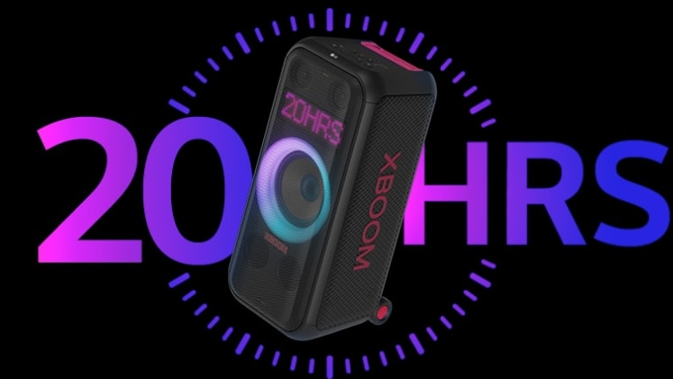 Το LG XBOOM XL7S έχει μπαταρία με μεγάλη διάρκεια ζωής, ώστε να μπορείτε να δυναμώνετε τη μουσική ανά πάσα στιγμή χωρίς να ανησυχείτε.