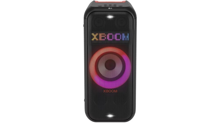 Το LG XBOOM DXL7T είναι ένα ισχυρό φορητό ηχείο 2.1 καναλιών με συνολική απόδοση 250W, εξοπλισμένο με Woofer 8 ιντσών για βαθύ, καθαρό μπάσο και δύο dome tweeters 2,5 ιντσών για καθαρό ήχο στις υψηλές συχνότητες. Διαθέτει δυναμικό φωτισμό pixel και πολυχρωματικό φωτισμό δακτυλίου, που συγχρονίζονται με τη μουσική. Η τηλεσκοπική λαβή και οι τροχοί προσφέρουν εύκολη μεταφορά, ενώ η αντοχή IPX4 προστατεύει από πιτσιλιές νερού. Η μπαταρία 20 ωρών εξασφαλίζει συνεχή λειτουργία, ενώ η συνδεσιμότητα Bluetooth 5.1, USB και οι είσοδοι μικροφώνου/κιθάρας το καθιστούν ιδανικό για πάρτι και ζωντανές εμφανίσεις.