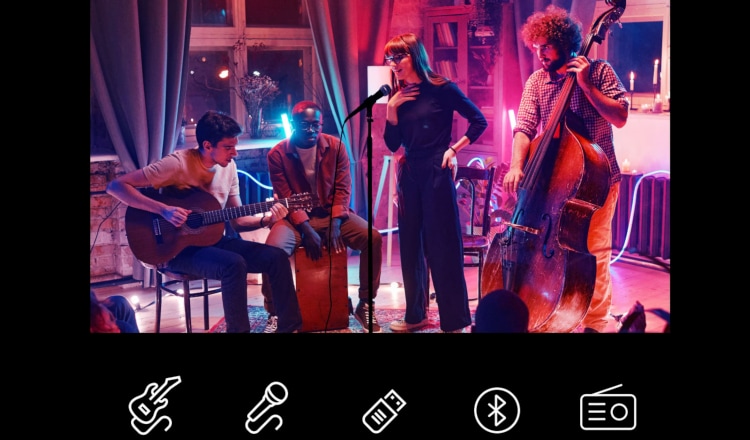 Σύνδεσε την κιθάρα ή το μικρόφωνό σου στο LG XBOOM RNC7, χρησιμοποίησε ένα USB με τις αγαπημένες σου playlists ή άκου ραδιόφωνο. Κάνε το δωμάτιο να σείεται και απόλαυσε τη μουσική σου στο έπακρο!