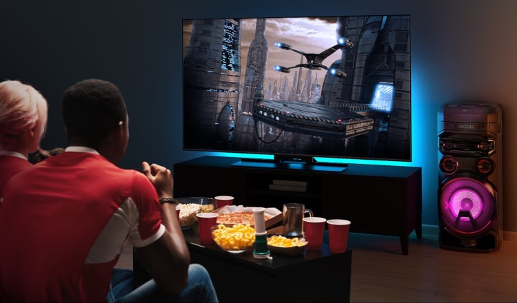 Σύνδεσε το LG XBOOM RNC7 στην LG τηλεόρασή σου μέσω οπτικού καλωδίου ή Bluetooth και βίωσε μια καθηλωτική οπτικοακουστική εμπειρία που θα γεμίσει τον χώρο!