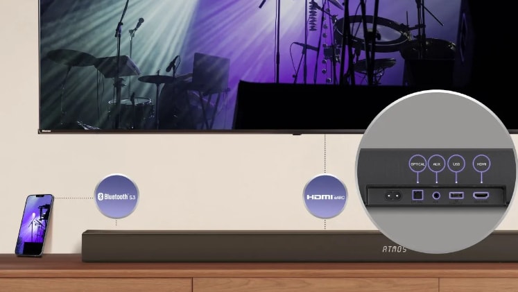 Η AX5100Q προσφέρει πληθώρα επιλογών συνδεσιμότητας για να καλύψει κάθε σου ανάγκη. Με HDMI eARC, Bluetooth 5.3, Οπτική είσοδο και USB, μπορείς να συνδέσεις εύκολα όλες τις συσκευές σου, από την τηλεόραση μέχρι το smartphone σου. Επιπλέον, ο κομψός και λεπτός σχεδιασμός της την καθιστά ιδανική για κάθε μοντέρνο σαλόνι, ενώ η δυνατότητα επιτοίχιας τοποθέτησης προσφέρει ευελιξία στην εγκατάσταση.