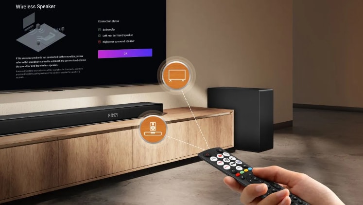 Βυθίσου σε έναν κόσμο αληθινού ήχου surround με τα 5.1.4 κανάλια της Hisense AX5140Q. Με τέσσερα up-firing ηχεία, απολαμβάνεις 360 μοίρες ήχο που σε περιβάλλει από κάθε κατεύθυνση, ακριβώς όπως στο σινεμά. Η υποστήριξη Dolby Atmos και DTS:X δημιουργεί μια καθηλωτική ακουστική όαση, κάνοντας τον ήχο να κινείται φυσικά γύρω σου για μια απίστευτα ρεαλιστική εμπειρία.