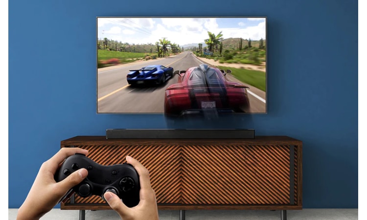 Το LG Sound Bar υποστηρίζει τις λειτουργίες VRR (Variable Refresh Rate - μεταβλητός ρυθμός ανανέωσης) και ALLM (Auto Low Latency Mode - αυτόματος χαμηλός λανθάνων χρόνος) για να ταιριάζει με τις αλλαγές του ρυθμού καρέ και να μειώνει την αλλοίωση της εικόνας.