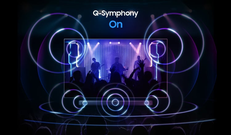 Τηλεόραση και soundbar, σε πλήρη αρμονία. Η λειτουργία Q-Symphony προσφέρει ήχο από όλα τα κανάλια μέσω των εμπρόσθιων, πλευρικών και ανοδικής κατεύθυνσης ηχείων της τηλεόρασης και του Soundbar για καθηλωτική ακουστική εμπειρία.