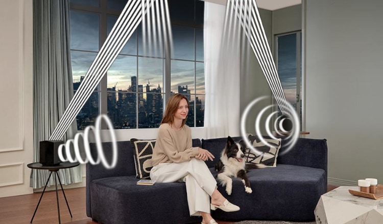 Κινηματογραφική ακουστική εμπειρία με ήχο που κόβει την ανάσα. Με τα ασύρματα πίσω ηχεία ανοδικής κατεύθυνσης που περιλαμβάνονται, ο ήχος αντανακλάται στον χώρο από κάθε σημείο του δωματίου για ηχητική ποιότητα κινηματογραφικής αίθουσας στο σπίτι.