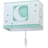 Απλίκα τοίχου με θέμα φεγγάρι και αστεράκια σε απαλούς πράσινους χρωματισμούς, ιδανικά σχεδιασμένη για γενικό ή συμπληρωματικό φωτισμό. Φωτίζει και προσθέτει διασκεδαστικό χαρακτήρα και χαρούμενο άγγιγμα σε κάθε παιδικό δωμάτιο ακόμα και στο σκοτάδι με τα εξωτερικά φωσφορίζοντα μέρη του. Η MoonLight Green απλίκα τοίχου είναι κατάλληλη ακόμα και για διάβασμα πάνω από το προσκέφαλο του κρεβατιού. Παρέχει ομοιόμορφο φως δημιουργώντας περιβάλλον που ενθαρρύνει τα παιδιά να επιδοθούν σε ότι τους αρέσει περισσότερο, διασκεδάζοντας ή δημιουργώντας! Υπάρχει δυνατότητα τοποθέτησης είτε με σύνδεση σε έτοιμη αναμονή παροχής ρεύματος στον τοίχο είτε σε πρίζα με καλώδιο και διακόπτη, που συμπεριλαμβάνεται στη συσκευασία.