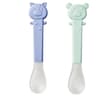 Κουτάλια φαγητού σετ σε γαλάζιο-βεραμάν χρώμα από την εταιρία Saro. Είναι κατασκευασμένα από πλαστικό, πολυπροπυλένιο και καουτσούκ, χωρίς BPA. Ιδανικό σετ για να μην βλάπτουν τα ούλα του μωρού σας κατά τα πρώτα του γεύματα.