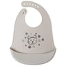 Αδιάβροχη σαλιάρα υψηλής ποιότητας της εταιρείας Kiokids σε γκρι χρώμα με σχέδιο ζωάκια. Διαθέτει τσέπη στο κάτω μέρος, η οποία είναι ιδανική για να συλλέγει το φαγητό που πέφτει κατά τη διάρκεια του ταΐσματος του μωρού σας, προστατεύοντας τα ρουχαλάκια του. Η σαλιάρα είναι κατασκευασμένη από 100% σιλικόνη και είναι ελαφριά, μαλακή και ασφαλής για το μωρό σας. Τοποθετείται και αφαιρείται εύκολα με μαλακά κουμπιά, ενώ έχει 6 διαφορετικές θέσεις κουμπώματος, ώστε προσαρμόζεται σωστά στο λαιμουδάκι του μωρού σας. Καθαρίζεται εύκολα μετά από κάθε χρήση, απλά με ένα υγρό πανί. Κατάλληλο για μωρά 4+ μηνών.