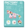 Με τη σειρά κατασκευής Factory η εταιρία Djeco εισάγει το παιδί στο ηλεκτρονικό κύκλωμα και την τεχνολογία. Δημιουργήστε κύκλωμα σε ένα κόσμημα χρησιμοποιώντας ένα αγώγιμο πολύ λεπτό καλώδιο. Μετά απλά προσθέστε την μπαταρία και το λαμπάκι LED. Τα πόδια από τη φιγούρα στο κόσμημα λειτουργούν σαν διακόπτης ο οποίος λειτουργεί όταν το παιδί το φοράει και κινείται. Το σετ περιλαμβάνει όλα τα απαραίτητα σύνεργα και τις οδηγίες κατασκευής.