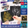 Εμπνεύστε τους μικρούς καλλιτέχνες του μέλλοντος με το σετ Out to Impress Gold και Silver Foiling Art. Ο ιδανικός τρόπος για να ενθαρρύνετε τα παιδιά να μυηθούν στην τέχνη, καθώς μαθαίνουν πώς να δημιουργούν πέντε σχέδια από ασημένια και τρία από χρυσά φύλλα, όπως μια τίγρη, ένας πιγκουίνος, μια οικογένεια καμηλοπαρδάλων και ένα πάντα. Ξύστε προσεκτικά τις τυπωμένες γραμμές για να δημιουργήσετε εντυπωσιακά έργα τέχνης. Χρησιμοποιήστε την άκρη του εργαλείου ξύστρας ώστε να δημιουργήσετε λεπτές γραμμές και χρησιμοποιήστε την πλευρά των εργαλείων για να δημιουργήσετε πλατύτερες γραμμές.