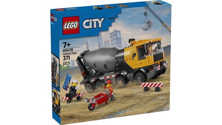 Ώρα να ρίξουμε τσιμέντο στη LEGO® City. Μπες στην καμπίνα της μπετονιέρας και πήγαινε στην οικοδομή. Βάλε τα οδοφράγματα και την πινακίδα εκτέλεσης έργων για να αποκλείσεις την περιοχή. Οδήγησε την μπετονιέρα στη θέση της και χαμήλωσε τη χοάνη. Στη συνέχεια, γύρισε τον κάδο για να ρίξεις το LEGO τσιμέντο. Όταν η δουλειά τελειώσει, φόρτωσε το καροτσάκι και τα εργαλεία σου, γείρε την καμπίνα για να τσεκάρεις τον κινητήρα και ξεκίνα για την επόμενη μεγάλη οικοδομή!