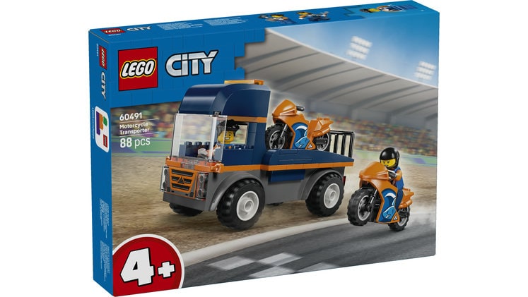 Ετοιμάσου για αγωνιστική διασκέδαση σε 2 τροχούς με αυτό το σετ παιχνιδιού LEGO® City Μεταφορικό Μοτοσικλετών με 3 οχήματα! Ρίξε μια ματιά στο απίθανο φορτηγό με την καρότσα, με ογκώδη ελαστικά και μπλε και πορτοκαλί χρώμα! Συνδέστε τη ράμπα και ανέβασε τις 2 μοτοσικλέτες. Όταν τις στερεώσεις, μπες στην καμπίνα του οδηγού και πήγαινε στην πλησιέστερη πίστα αγώνων. Κρατήσου γερά, αυτές οι μηχανές είναι φτιαγμένες για ταχύτητα!