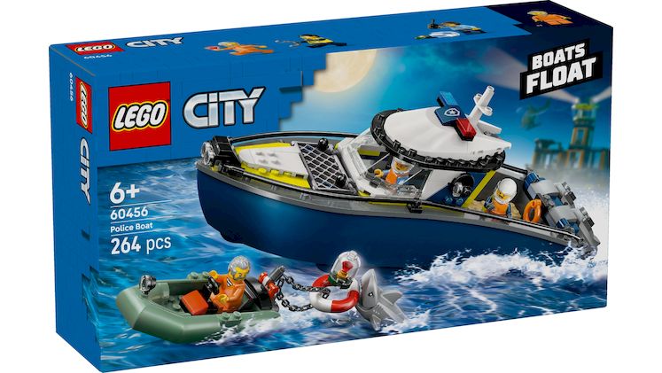 Ένας πονηρός κακοποιός με ένα σούπερ γρήγορο φουσκωτό φεύγει από το λιμάνι της LEGO® City ρυμουλκώντας ένα κλεμμένο ρουμπίνι. Μπες στη δράση με τους αστυνομικούς στο πανίσχυρο αστυνομικό σκάφος που έχει ό,τι χρειάζεσαι για να πιάνεις κακοποιούς, όπως δύο εξωλέμβιες μηχανές και κελί. Απόφυγε τον πεινασμένο καρχαρία και σκίσε τα κύματα να σώσεις την κατάσταση. Η καταδίωξη ξεκίνησε στη LEGO City!