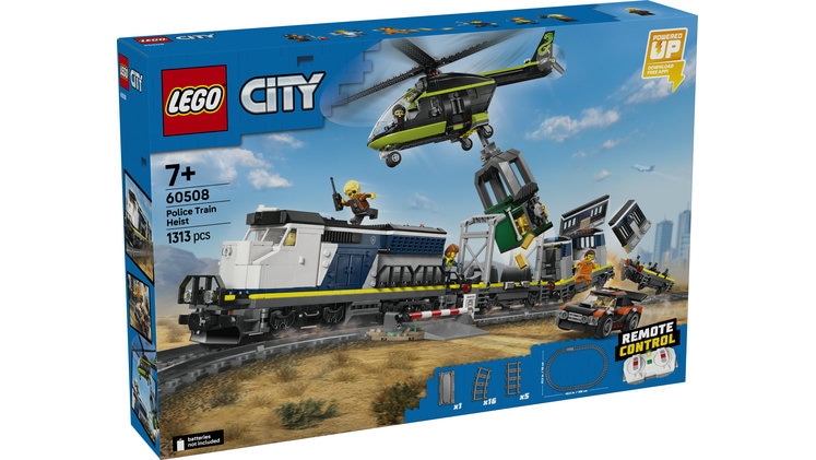 Επιβιβάσου για περιπέτειες γεμάτες δράση με τη LEGO® City Ληστεία Αστυνομικού Τρένου! Η αστυνομία της πόλης μεταφέρει έναν κακοποιό, το αγωνιστικό αυτοκίνητο διαφυγής του και ένα κλεμμένο χρηματοκιβώτιο τράπεζας με το αστυνομικό τρένο. Αλλά οι κακοποιοί έχουν άλλα σχέδια και έχουν τροποποιήσει ένα ελικόπτερο με μια τεράστια αρπάγη για να κάνουν την πιο τολμηρή ληστεία που έγινε ποτέ. Θα τα καταφέρουν ή η αστυνομία της LEGO City θα σώσει την κατάσταση;