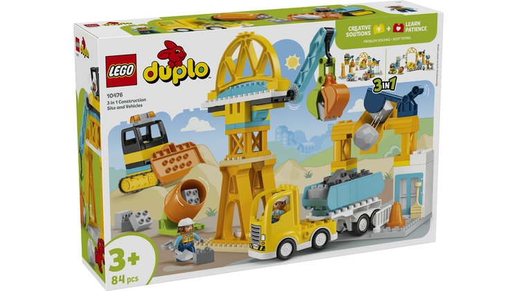 Βοηθήστε τα νήπια να φανταστούν τη ζωή σε ένα εργοτάξιο. Τα νήπια κατασκευάζουν και ανακατασκευάζουν τα 84 τουβλάκια και κομμάτια και δημιουργούν τα αγαπημένα τους οχήματα. Φτιάχνουν μια μπουλντόζα, ανατρεπόμενο φορτηγό, γερανό και άλλα. Ή κατασκευάζουν το δικό τους εργοτάξιο και οδηγούν εκεί τα οχήματά τους. Με 2 φιγούρες, τα νήπια οδηγούν και χειρίζονται τα οχήματα για να τελειώσουν τη δουλειά.