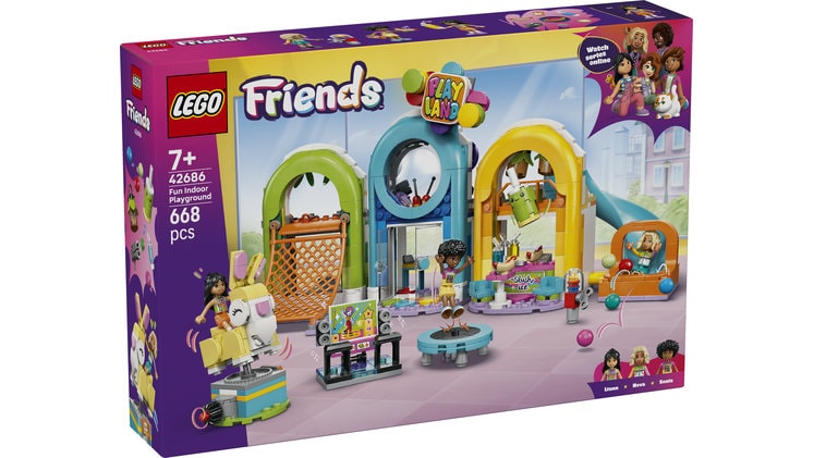 Ετοιμάσου να σκαρφαλώσεις, να πηδήξεις, να παίξεις και να διασκεδάσεις στον LEGO® Friends Διασκεδαστικό Παιχνιδότοπο. Έλα μαζί με τη Λιάν και τη Νόβα καθώς δοκιμάζουν το δίχτυ αναρρίχησης και τα εμπόδια. Τους αρέσει να ανεβαίνουν στο καρουζέλ ή να βουτούν στην μπαλοπισίνα και μετά να ανεβαίνουν στο παιχνίδι-λαγουδάκι. Όταν έρθει η ώρα για ένα διάλειμμα, πιάσε κουβέντα με την ιδιοκτήτρια Σόνια και απόλαυσε ένα σνακ από το μπαρ.