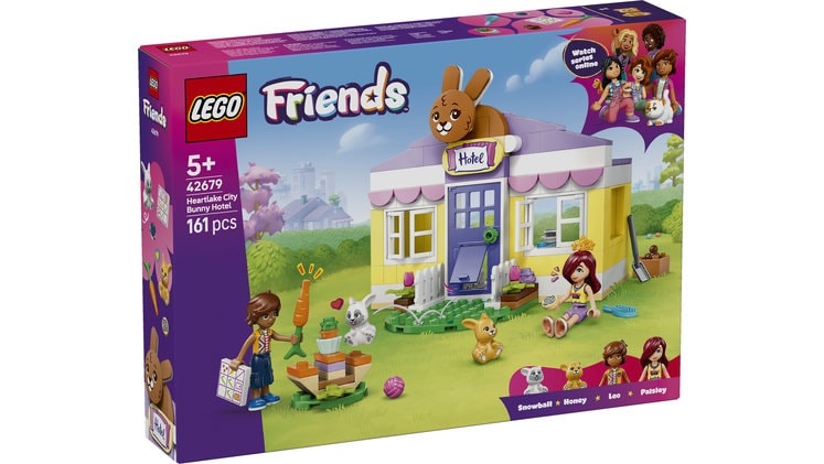 Γεια σου, λάτρη των κουνελιών! Ώρα να επισκεφτούμε το LEGO® Friends Ξενοδοχείο της Χάρτλεϊκ Σίτυ για Κουνελάκια. Τα κουνελάκια έχουν θερμή υποδοχή με τη δική τους πόρτα κατοικίδιων. Υπάρχει επίσης λίστα ελέγχου για το πότε έρχονται και φεύγουν τα κουνελάκια από το ξενοδοχείο. Μετά από ένα σνακ, τα κουνελάκια απολαμβάνουν παιχνίδι. Μετά, κουρνιάζουν στα κρεβάτια των κουνελιών για έναν υπνάκο. Ωχ, όχι! Έκανε κακάκια ένα κουνέλι; Κανένα πρόβλημα! Να ένα φτυαράκι για καθάρισμα.