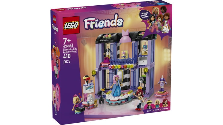 Ετοιμάσου να λάμψεις στην LEGO® Friends Επίδειξη Μόδας Χάρτλεϊκ Σίτυ. Βοήθησε τη Λιάν, τη Νόβα και την Πέιζλι να διαλέξουν ρούχα. Θα διαλέξουν τζιν, φούστα ή ένα ωραίο μπουφάν; Βάλε τις τελικές πινελιές με αξεσουάρ, περούκες ή ένα καπέλο. Οι φίλες ανεβαίνουν στην περιστρεφόμενη πλατφόρμα για να αποκαλύψουν τα νέα τους στυλ. Μετά, ρίχνουν μια ματιά στον καθρέφτη και βγαίνουν στην πασαρέλα.