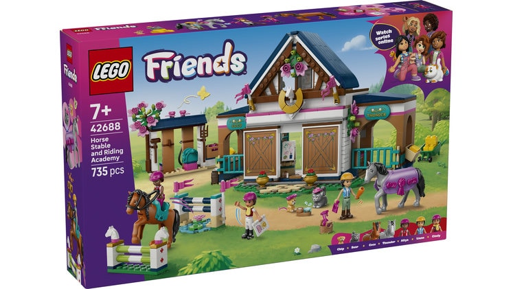 Μάθε να ιππεύεις σαν σταρ στο LEGO® Friends Στάβλος Αλόγων και Σχολή Ιππασίας. Έλα μαζί με τη Λιάν και την Αλίγια καθώς παρακολουθούν μαθήματα με την εκπαιδεύτρια Σίντι. Σέλωσε τα 2 άλογα και πήγαινέ τα για υπερπήδηση εμποδίων. Δοκίμασε διάφορες δουλειές, όπως τη μεταφορά σανού με το καροτσάκι ή τον καθαρισμό και το τάισμα των αλόγων. Μετά από μια κουραστική μέρα, δώσε στα άλογα ένα καρότο και κοιμήσου στα άνετα κρεβάτια πάνω από τους στάβλους.