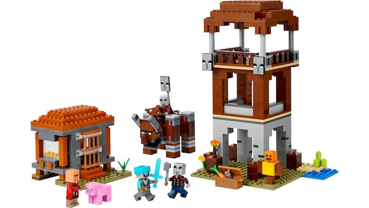 Δράση μάχης σε χωριό με το παιχνίδι κατασκευής LEGO® Minecraft® Το Οχυρό των Αρπάγων
